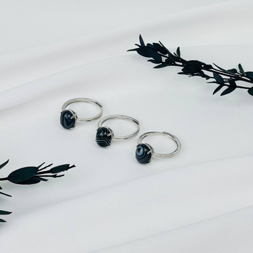 Радуга Самоцветов Кольцо регулируемое из полосатого Агата