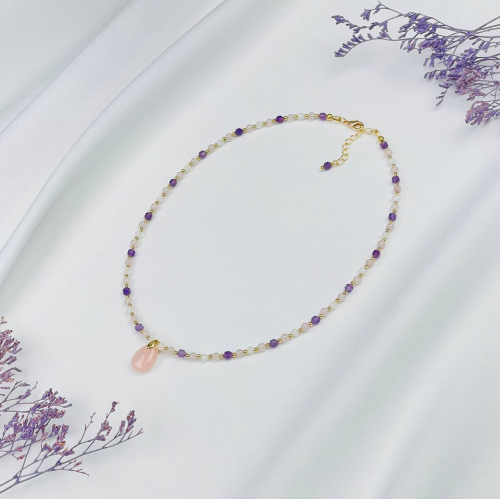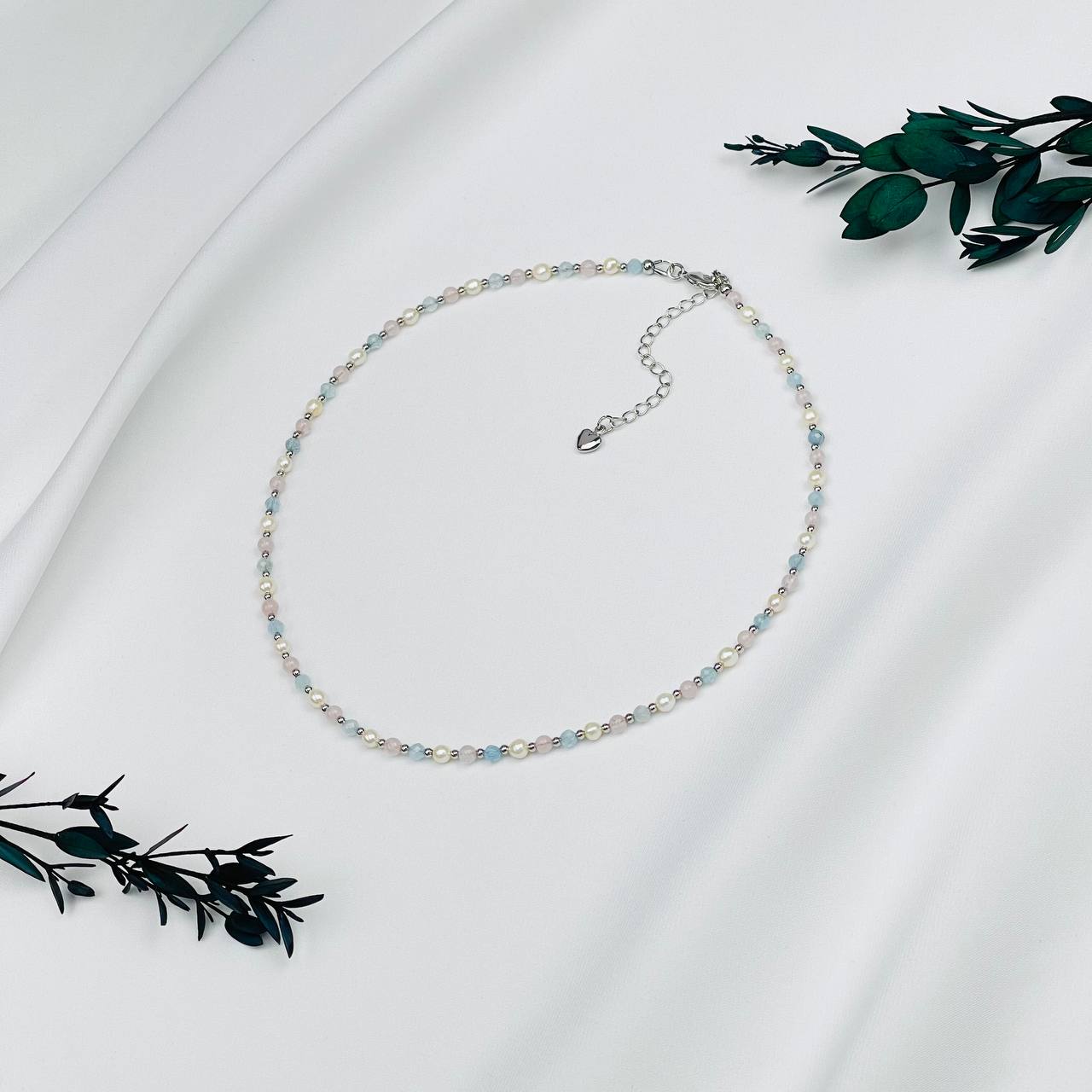 Радуга Самоцветов Колье для Рыб из Аквамарина, Жемчуга и Розового кварца