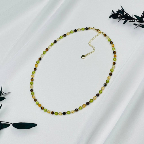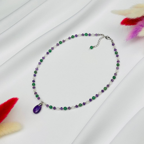 Радуга Самоцветов Колье для "Тельца" из Агата,Лунного камня и Турмалина