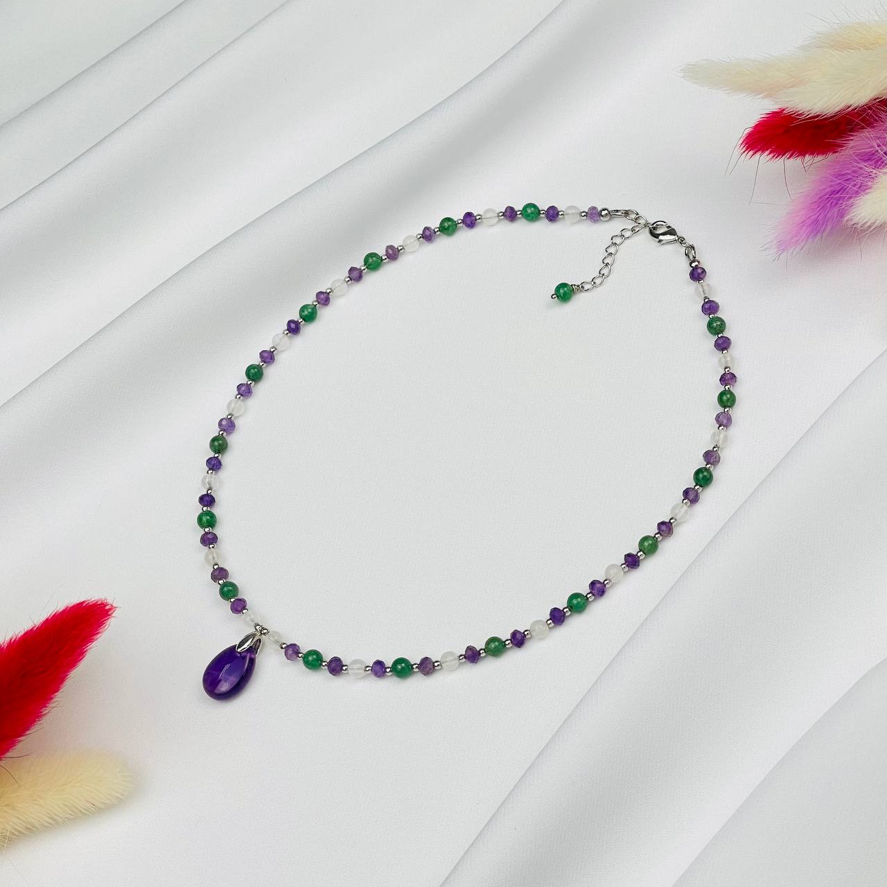 Радуга Самоцветов Колье для "Тельца" из Аметиста,Лунного камня и зеленого Кварца
