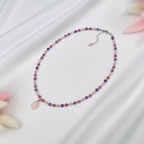 Радуга Самоцветов Колье для "Весов" из Аквамарина,Рутилового кварца и Родонита