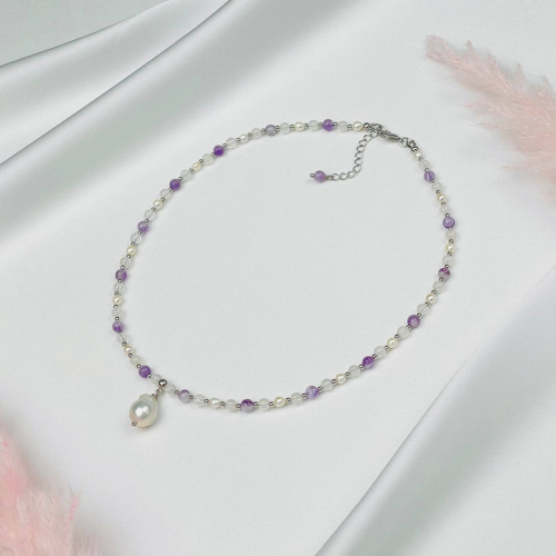 Радуга Самоцветов Колье для "Весов" из Аметиста,Розового кварца и Турмалина