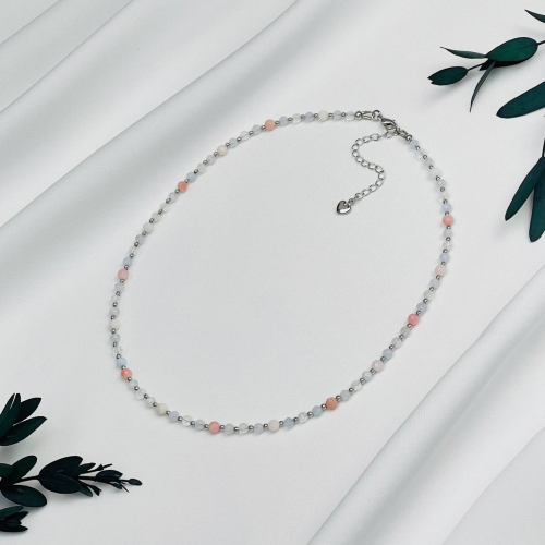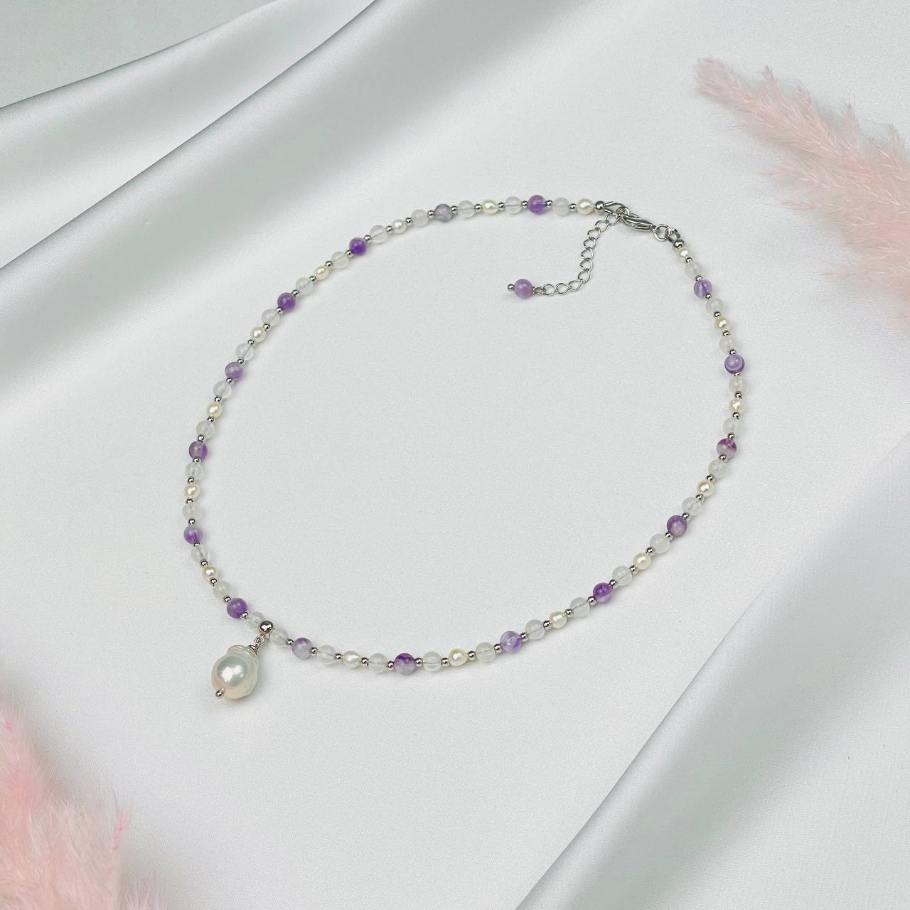 Радуга Самоцветов Колье для "Водолея" из Лунного камня, Аметиста и Жемчуга