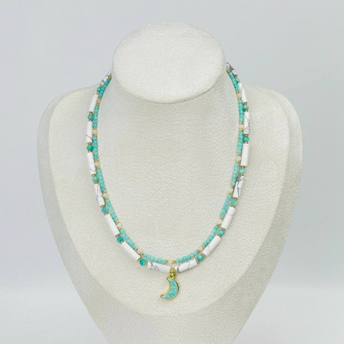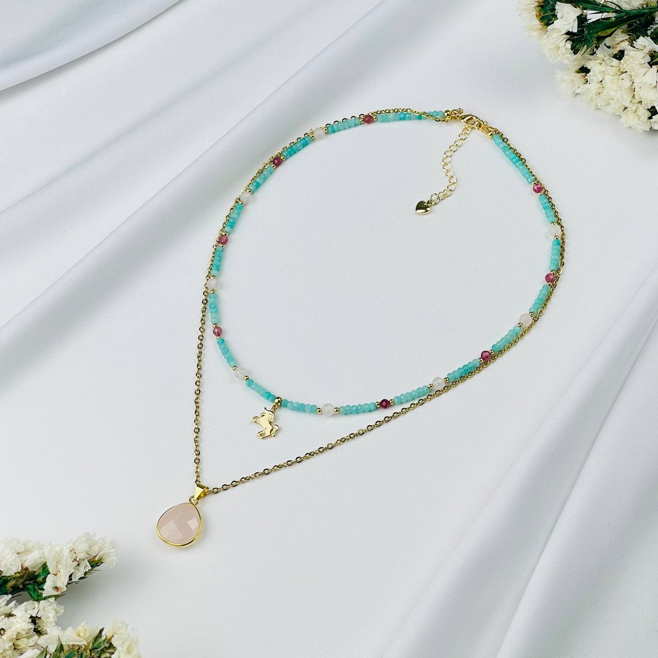 Радуга Самоцветов Колье двойное из Амазонита, Розового кварца и розового Турмалина