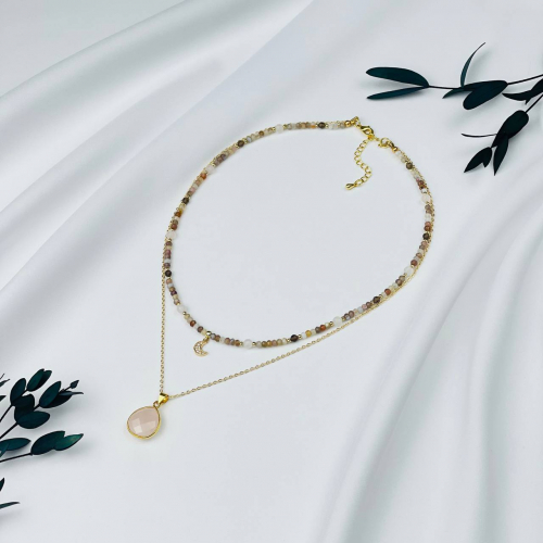 Радуга Самоцветов Колье двойное из Граната, Жемчуга, Шпинели и Агата