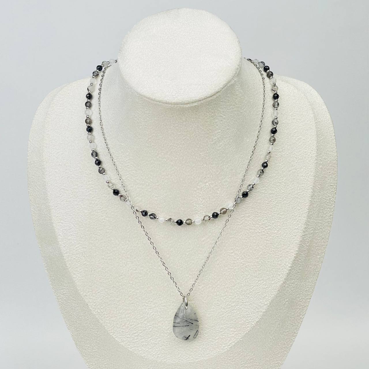 Радуга Самоцветов Колье двойное из Кварца с Турмалином и Шпинели