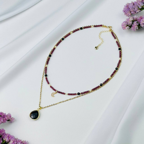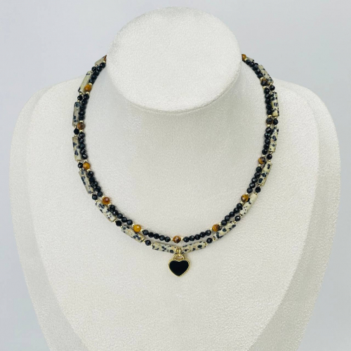 Радуга Самоцветов Колье двойное из Кварца с Турмалином и Шпинели