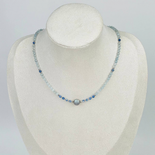 Радуга Самоцветов Колье из Аквамарина, Апатита и Ларимара