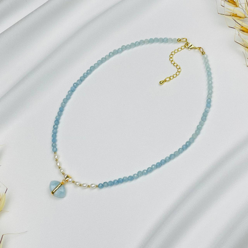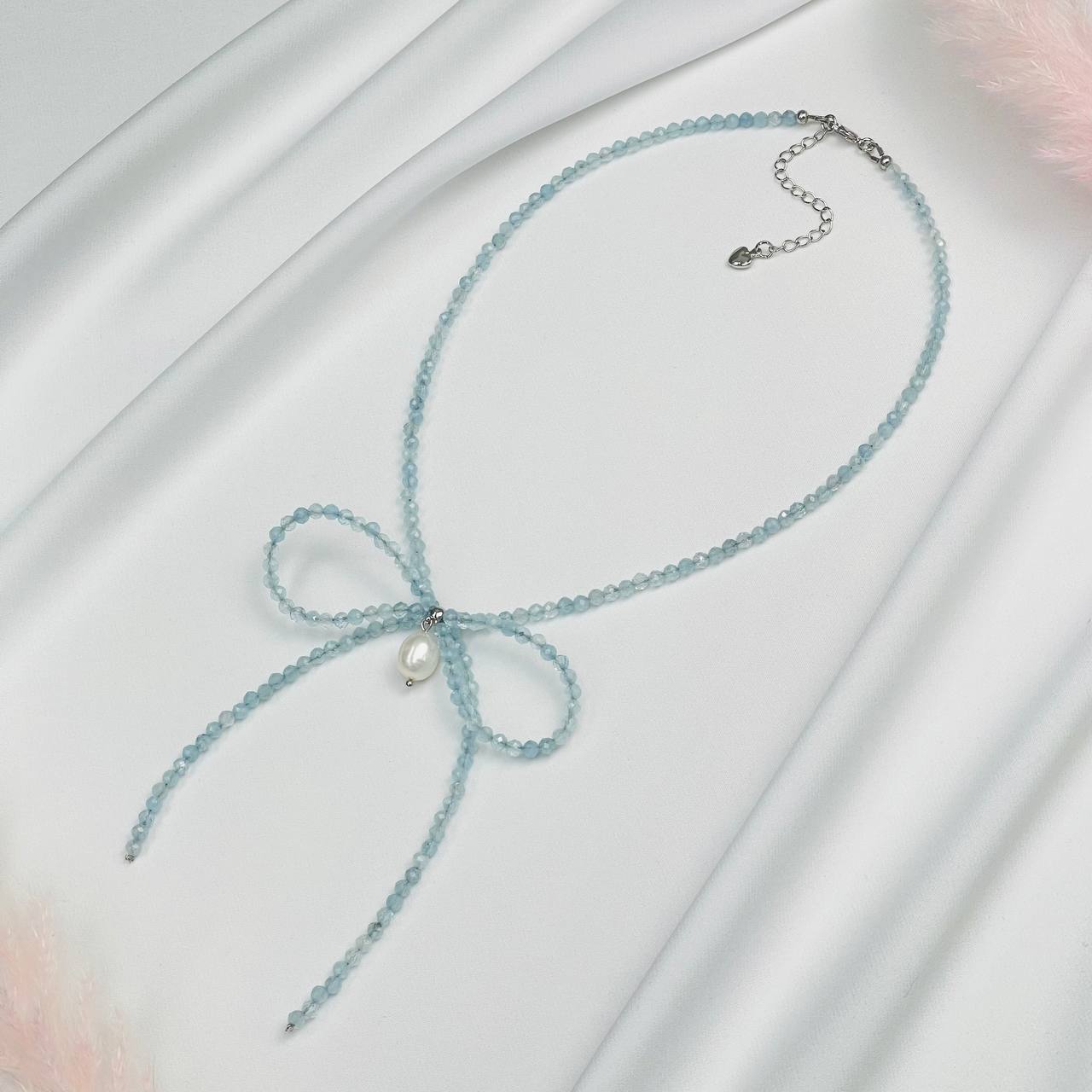 Радуга Самоцветов Колье из Аквамарина и Жемчуга "Бантик"