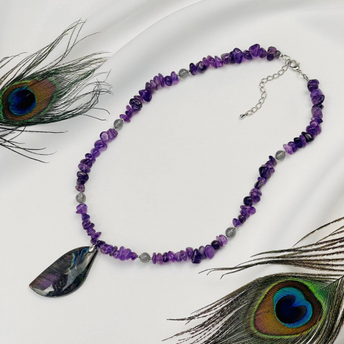 Радуга Самоцветов Колье из Аметиста и Розового кварца