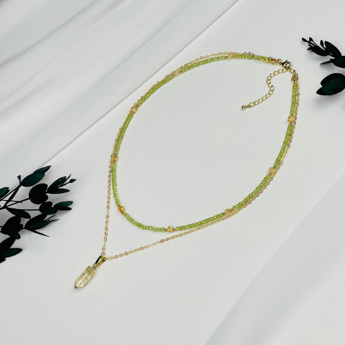 Радуга Самоцветов Колье из Авантюрина и Розового кварца