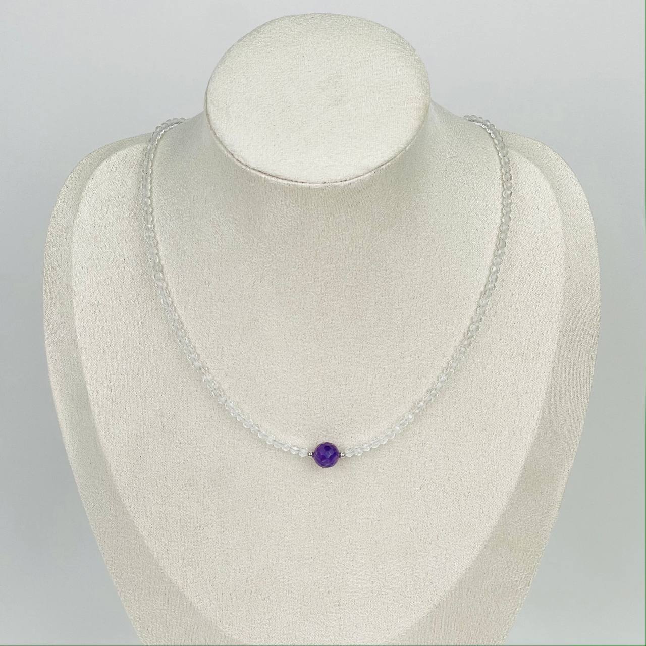 Радуга Самоцветов Колье из Горного Хрусталя и Аметиста