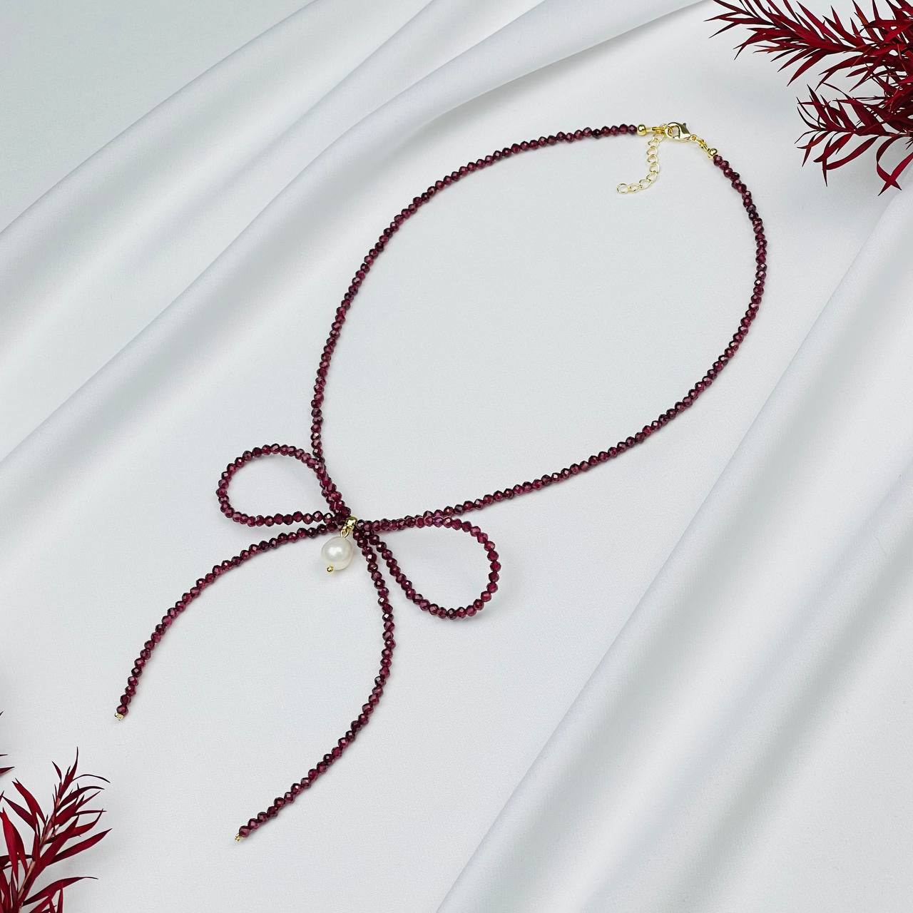Радуга Самоцветов Колье из Граната и Жемчуга "Бантик"