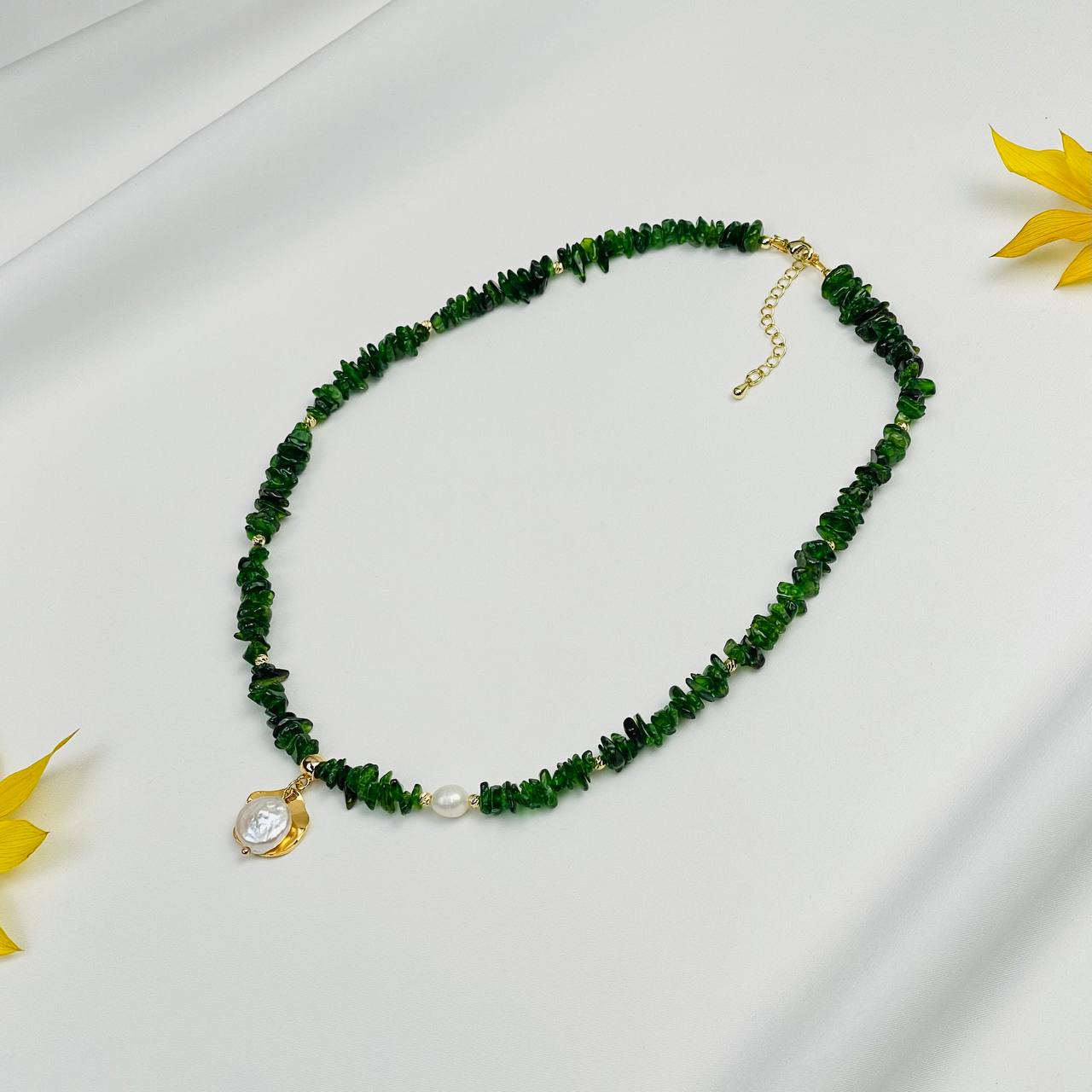 Радуга Самоцветов Колье из Хромдиопсида и Жемчуга