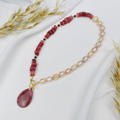 Радуга Самоцветов Колье из Кальцита и Граната "Спессартин" с подвеской