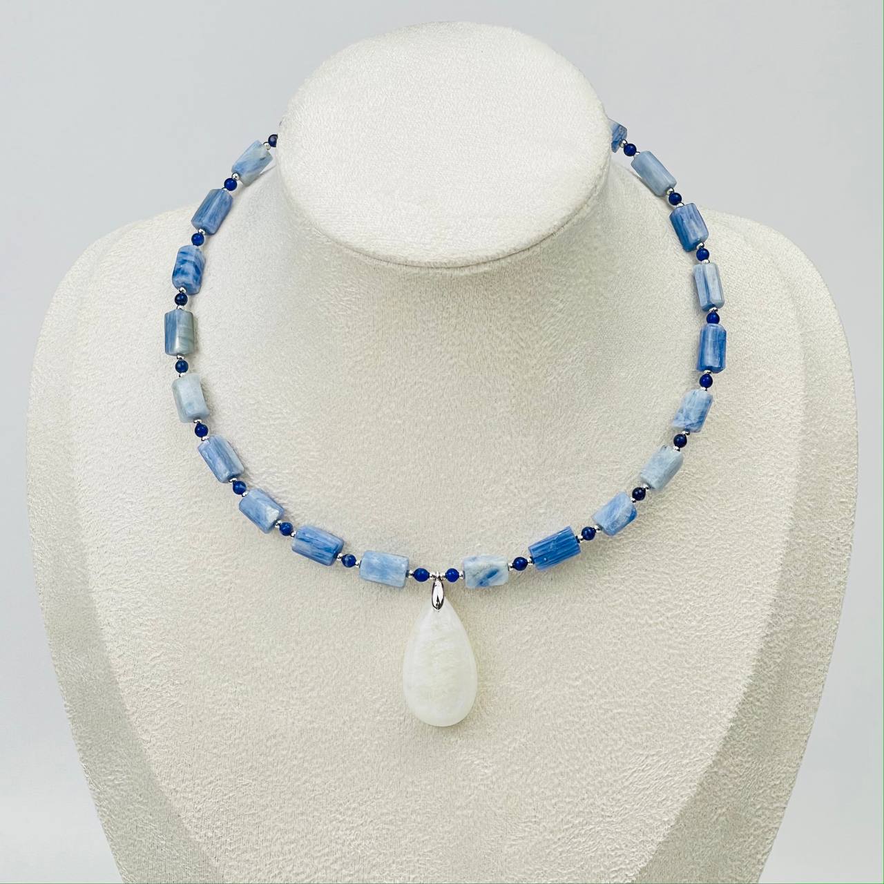 Радуга Самоцветов Колье из Кианита и Содалита с кулоном из Лунного камня