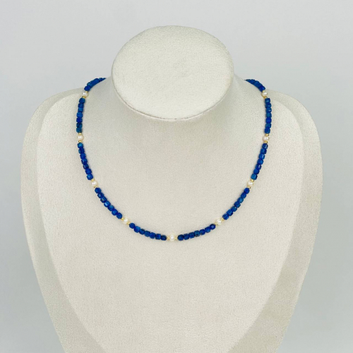Радуга Самоцветов Колье из Кианита и Жемчуга (градиент)