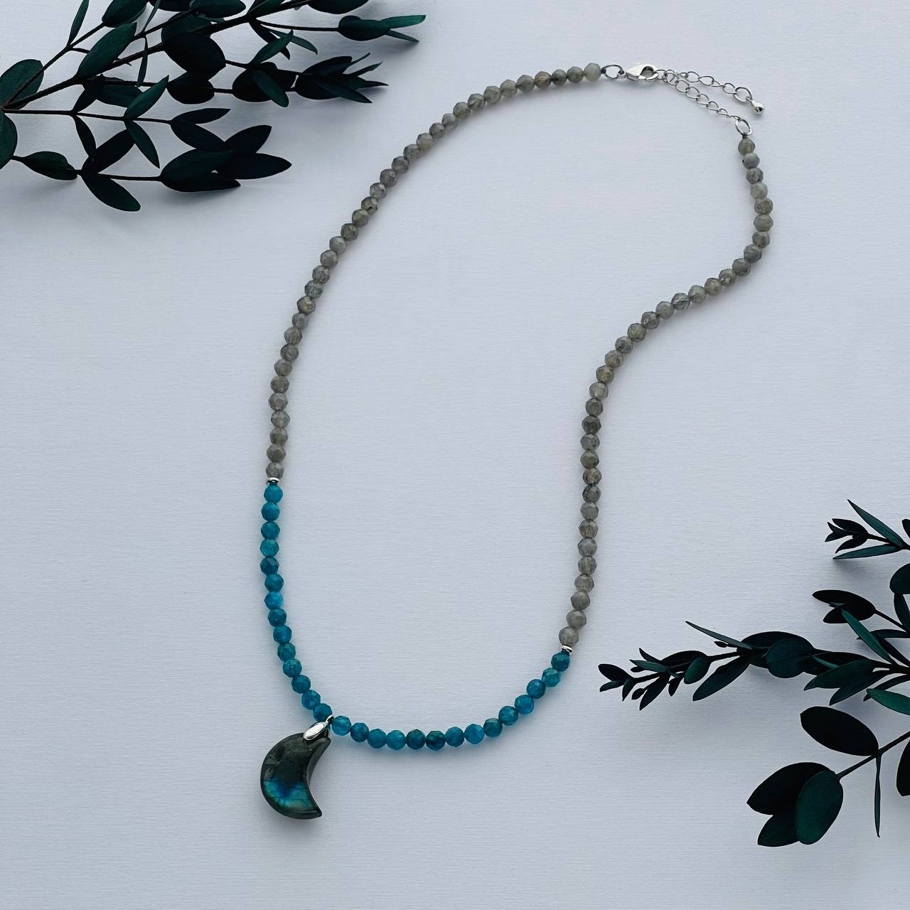 Радуга Самоцветов Колье из Лабрадора и Апатита с кулоном "Месяц"