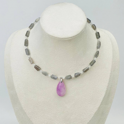 Радуга Самоцветов Колье из Лабрадора и Лунного камня с кулоном из Кунцита