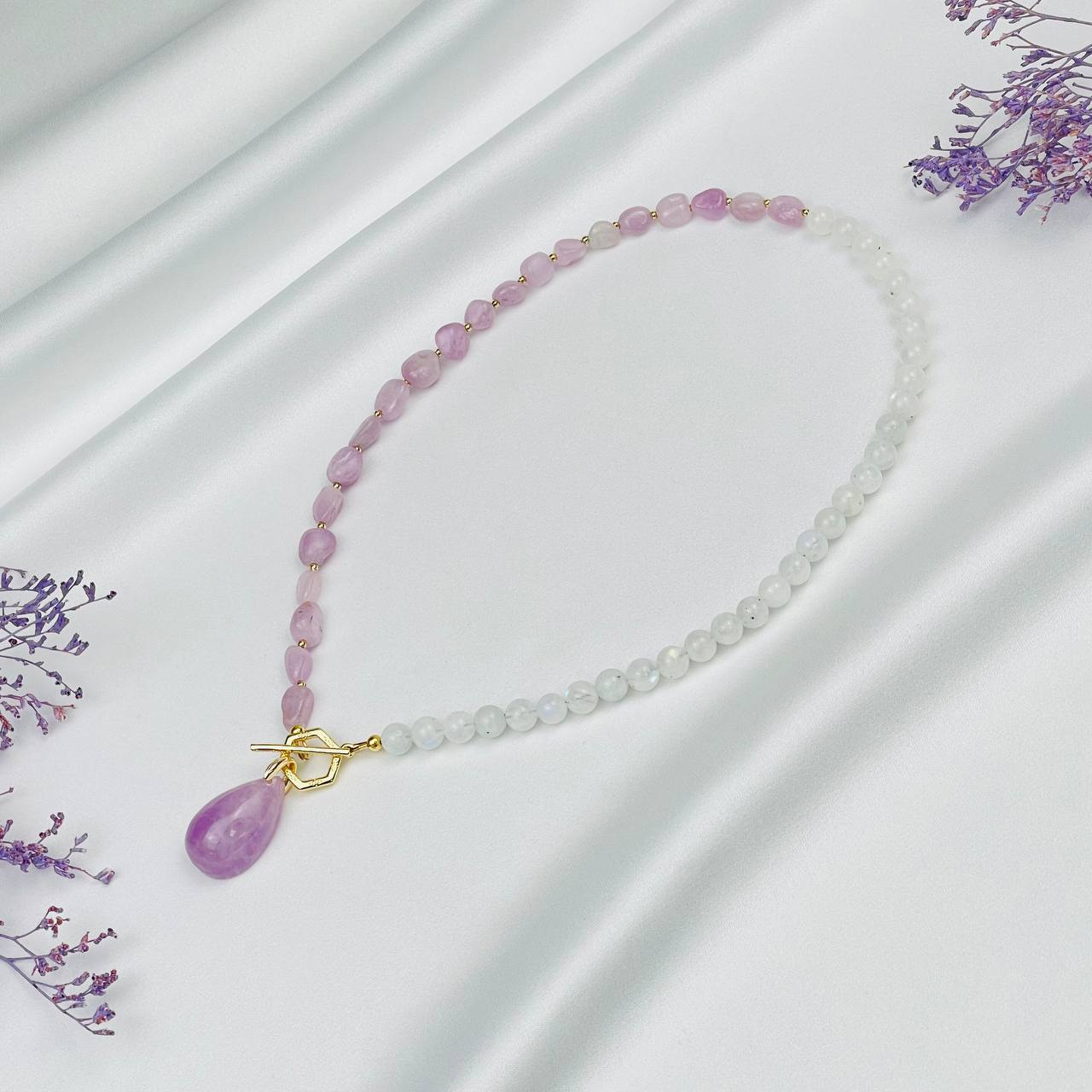 Радуга Самоцветов Колье из Лунного камня и Кунцита