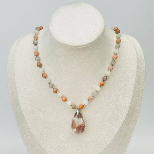 Радуга Самоцветов Колье из Лунного камня с кулон из Лодолита