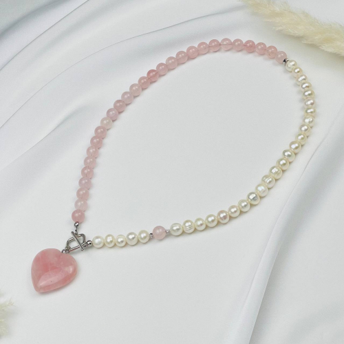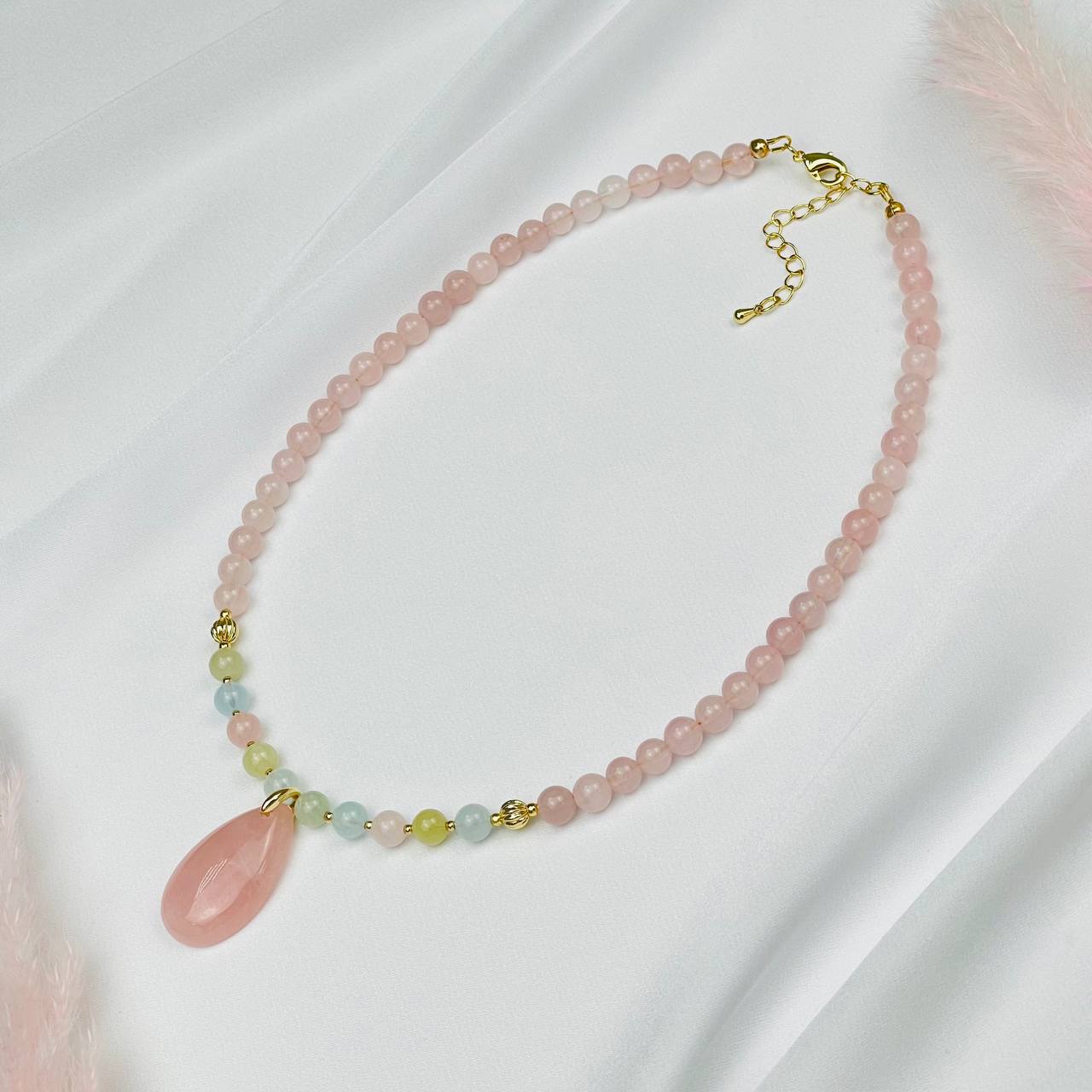 Радуга Самоцветов Колье из мадагаскарского Розового кварца и Берилла