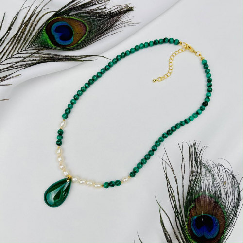 Радуга Самоцветов Колье из Малахита и Жемчуга