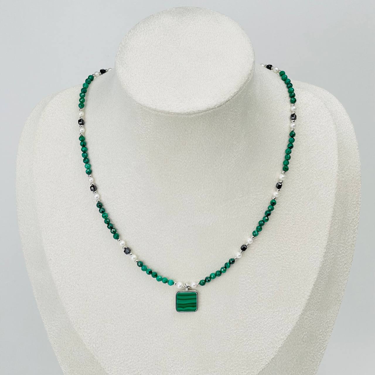 Радуга Самоцветов Колье из Малахита, Жемчуга и Шпинели