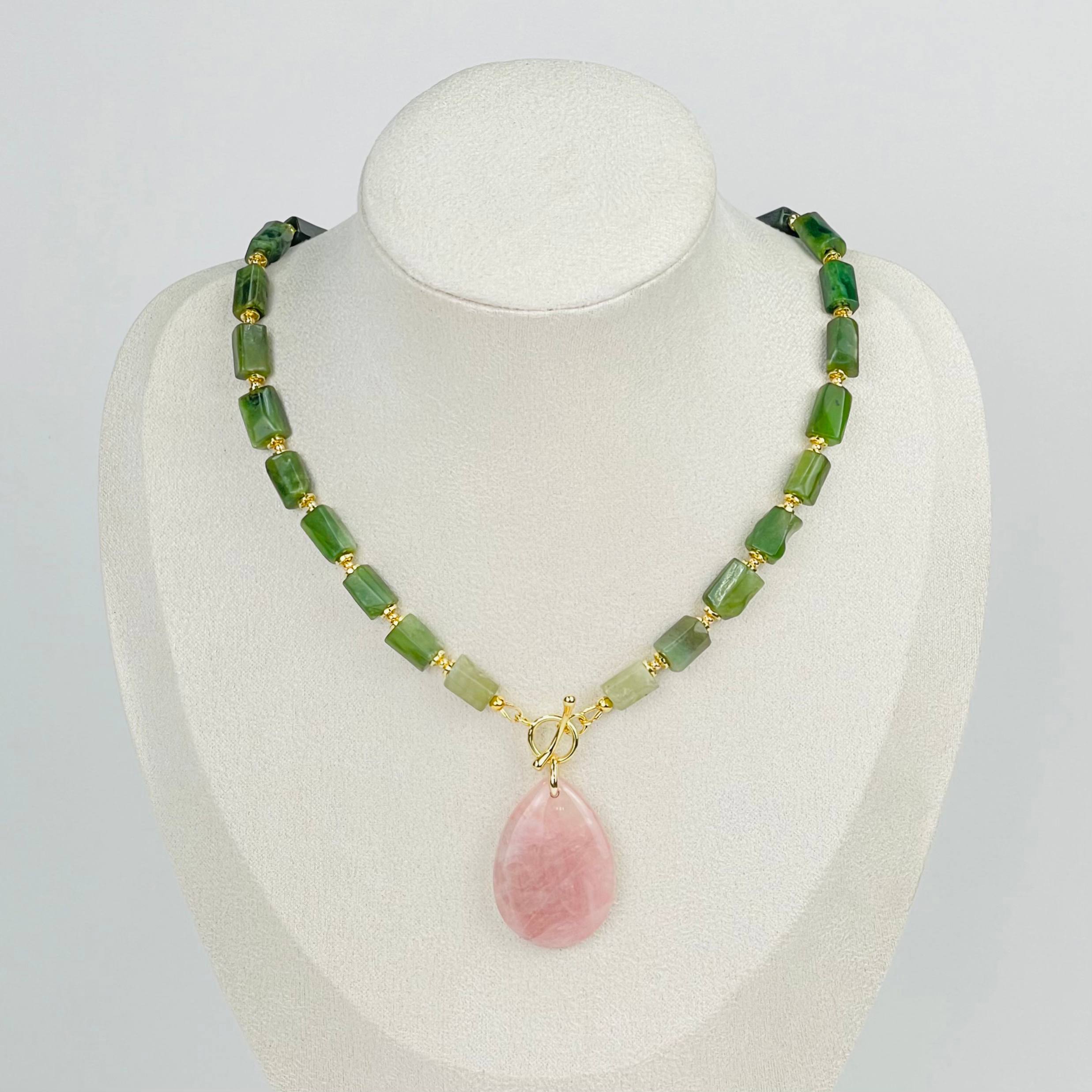 Радуга Самоцветов Колье из Нефрита и Розового кварца (градиент)