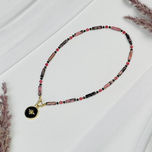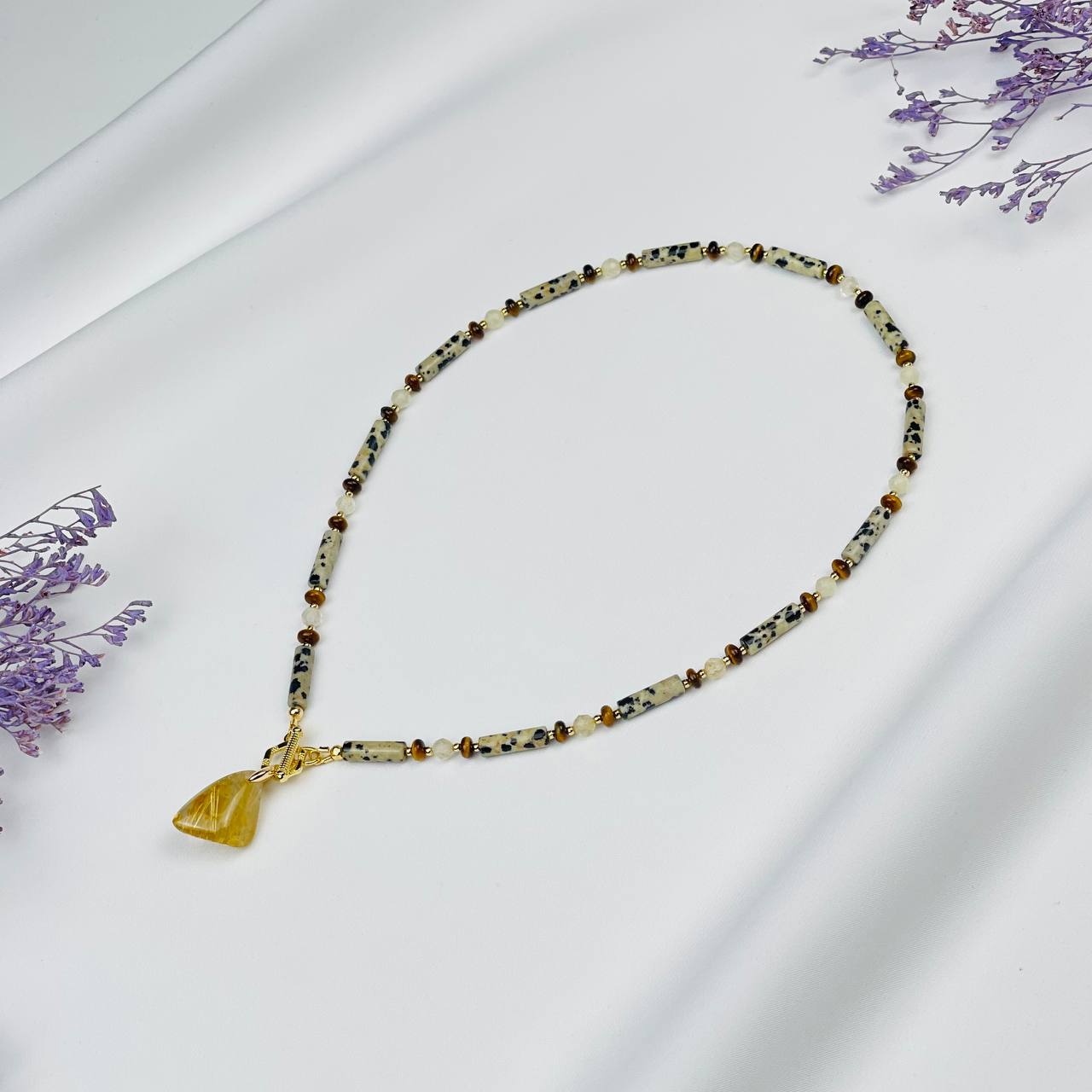 Радуга Самоцветов Колье из перепелиной Яшмы,Тигрового глаза и Рутилового кварца