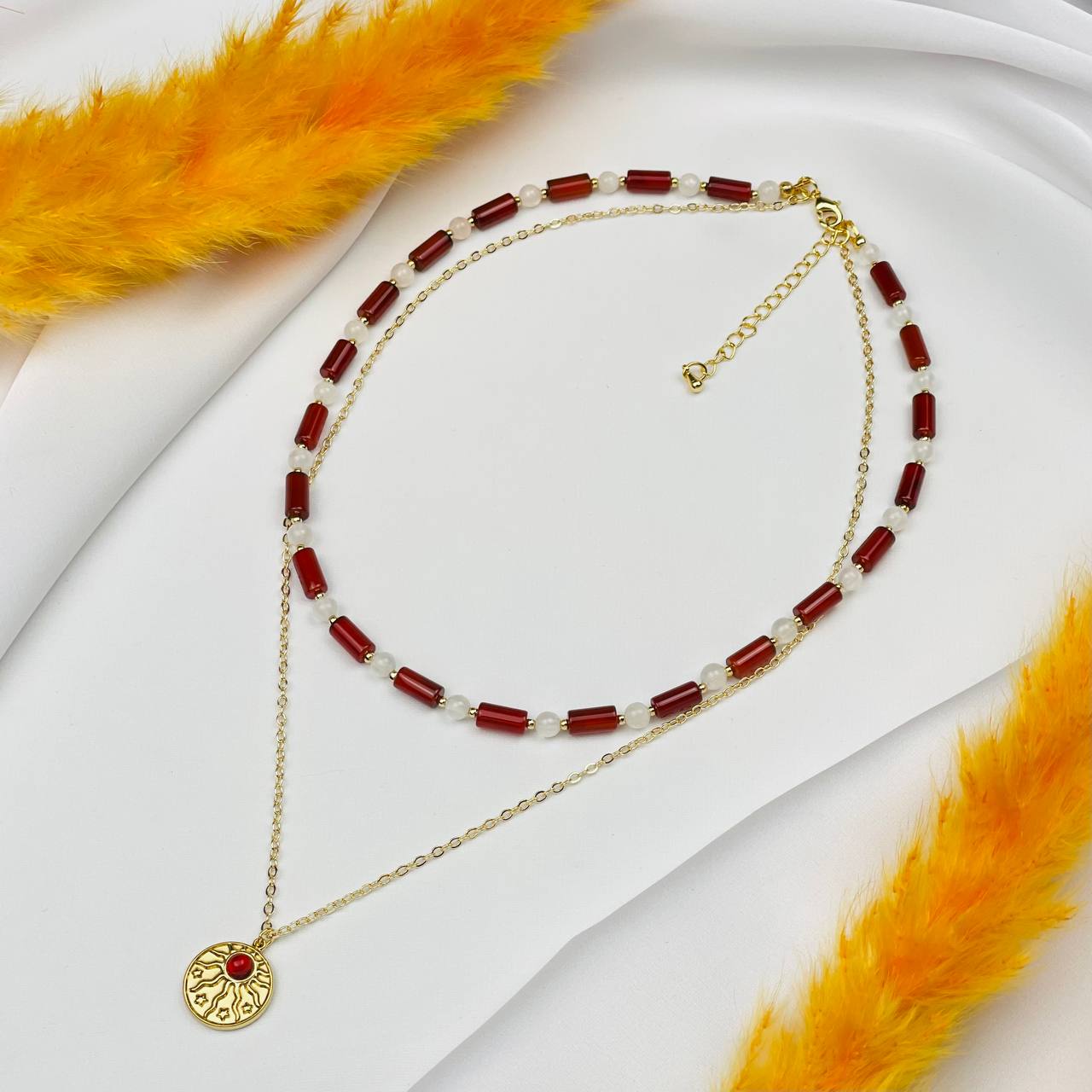 Радуга Самоцветов Колье из Сердолика и Селенита с подвеской