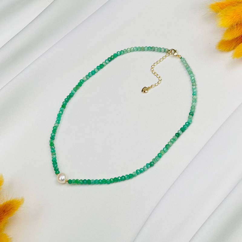 Радуга Самоцветов Колье из зеленого Берилла и Жемчуга "градиент"