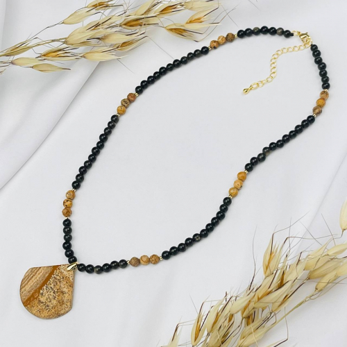 Радуга Самоцветов Колье из золотистого Обсидиана и Турмалина микс