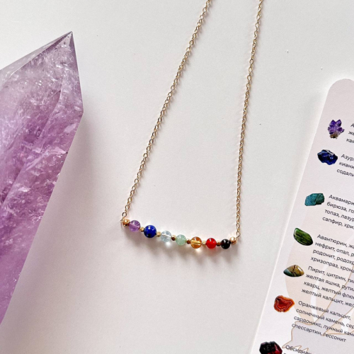 Радуга Самоцветов Колье на цепочке "7 чакр" с Самоцветами