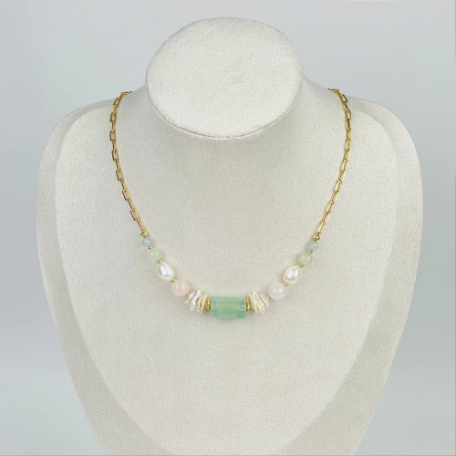 Радуга Самоцветов Колье на цепочке из Берилла микс и Жемчуга