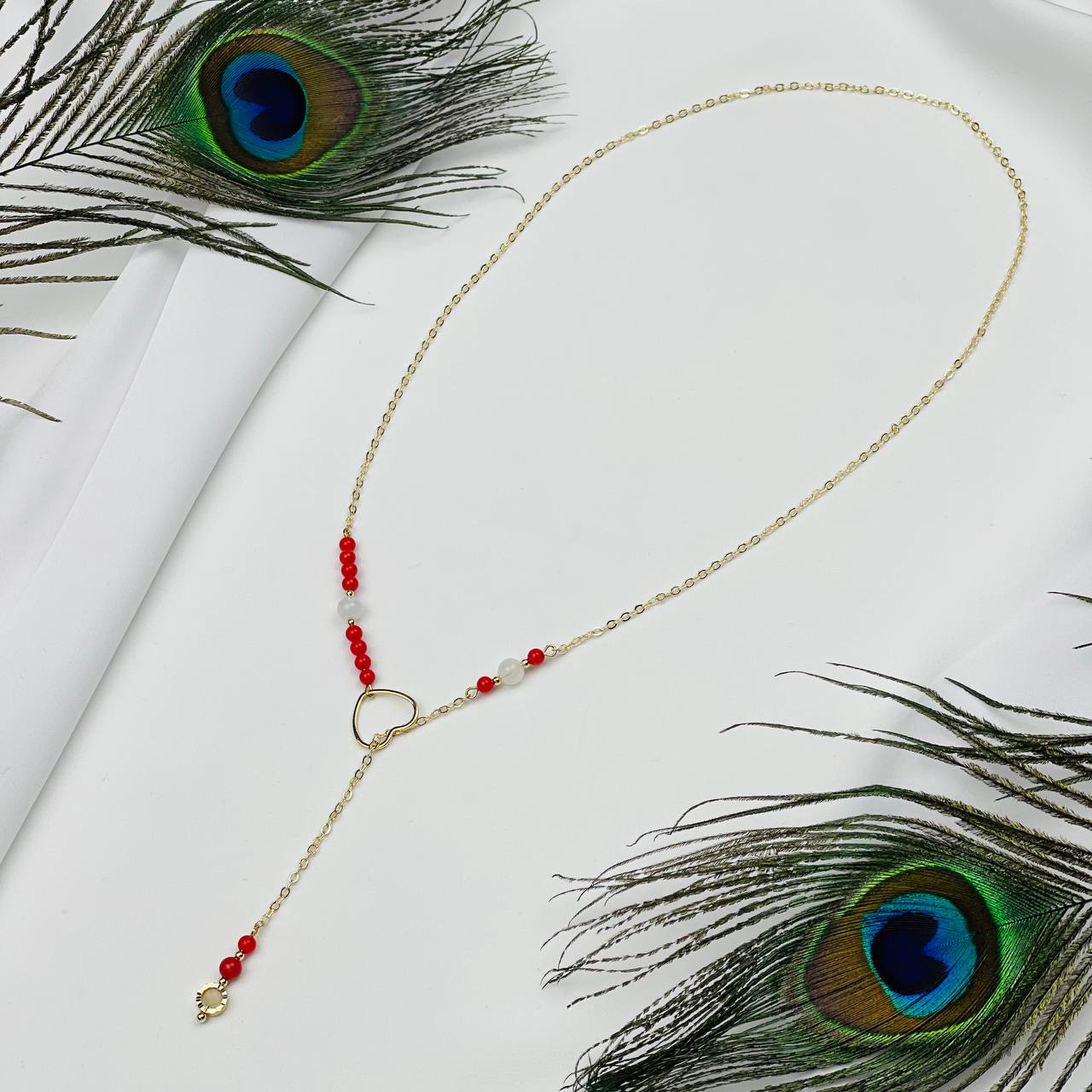 Радуга Самоцветов Колье на цепочке из Коралла и Лунного камня