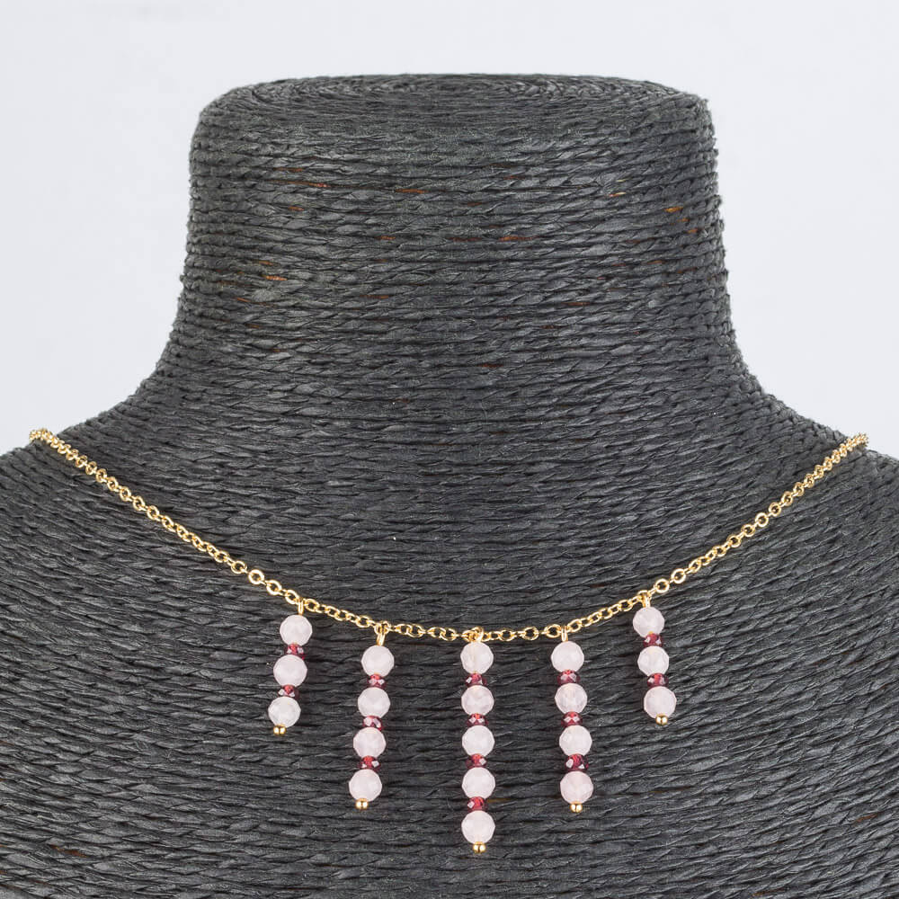 Радуга Самоцветов Колье на цепочке из Розового кварца и Граната