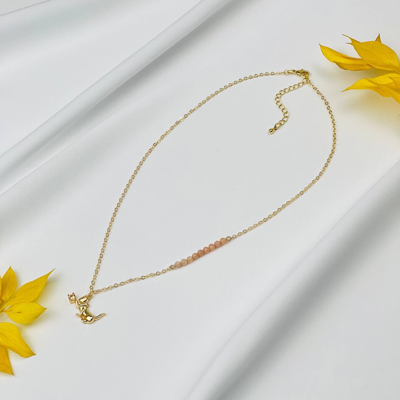 Радуга Самоцветов Колье на цепочке с Лунным камнем и подвеской "Кошка"