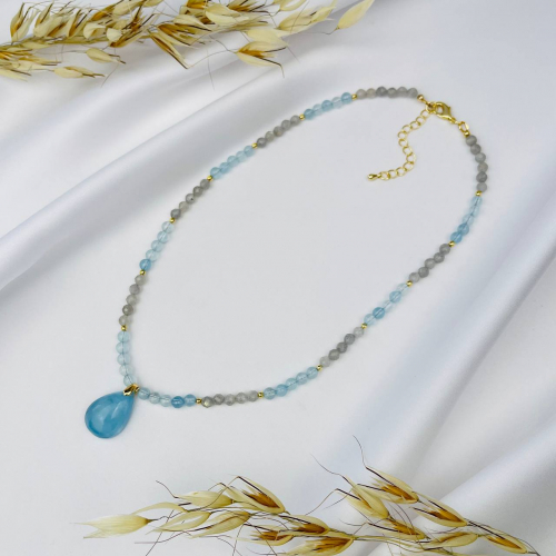 Радуга Самоцветов Колье "Стихия Вода" из Лабрадора, Аквамарина и Жемчуга