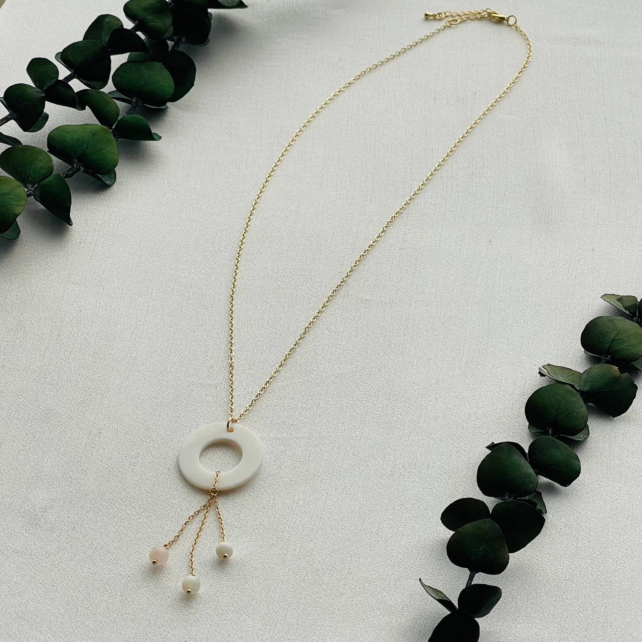 Радуга Самоцветов Кулон на цепочке из Перламутра с Розовым кварцем
