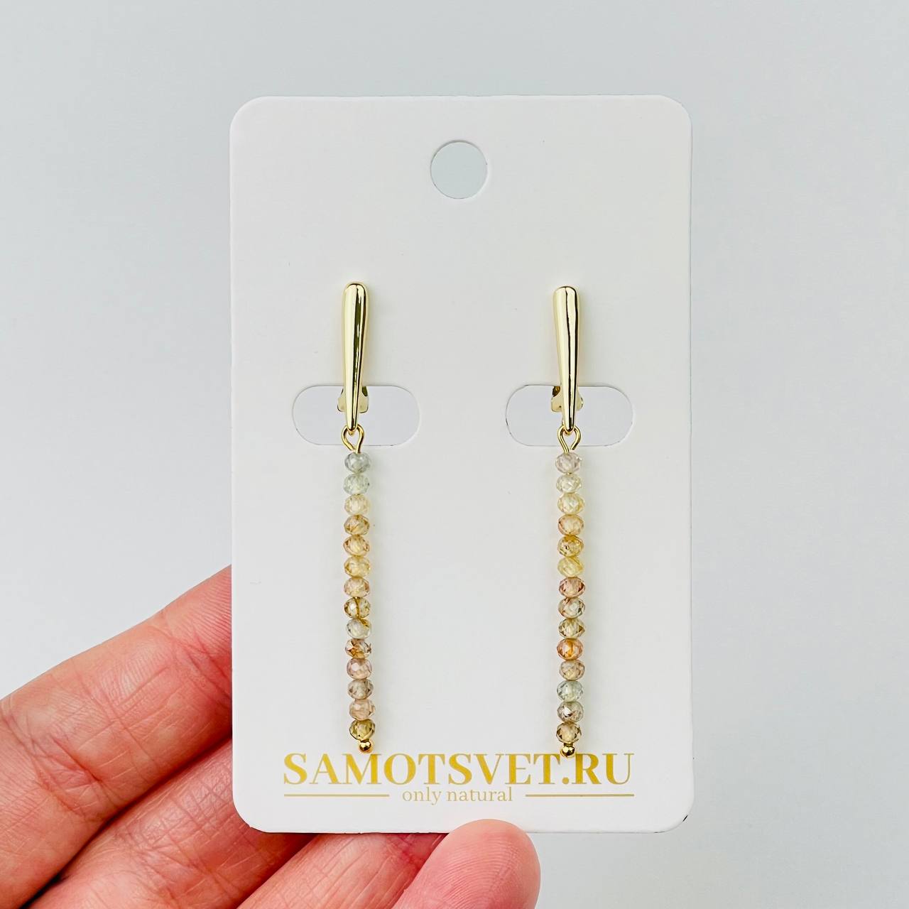Радуга Самоцветов Серьги длинные из натурального Циркона