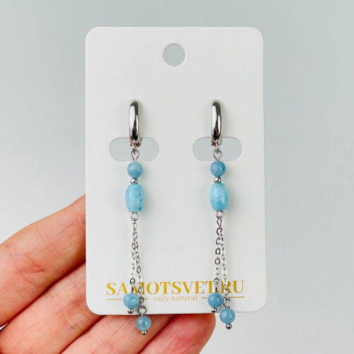 Радуга Самоцветов Серьги из Аквамарина и Ларимара
