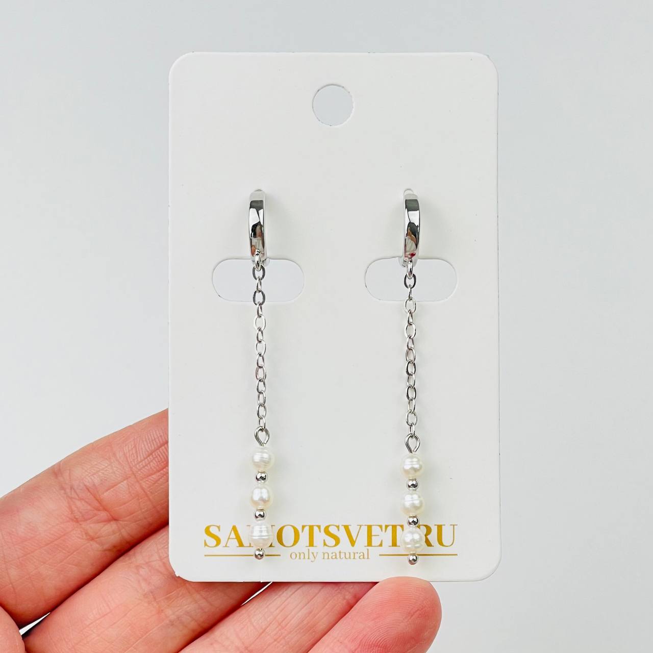 Радуга Самоцветов Серьги на цепочке из Жемчуга
