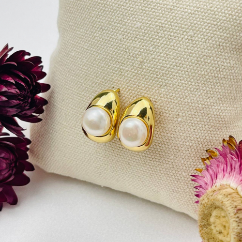 Радуга Самоцветов Серьги-пусеты из речного белого Жемчуга с Перламутром