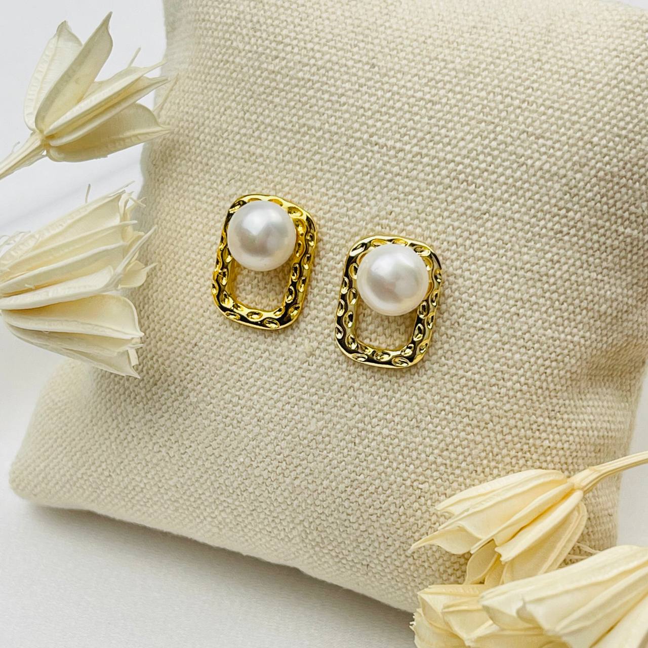 Радуга Самоцветов Серьги-пусеты из речного Жемчуга