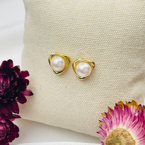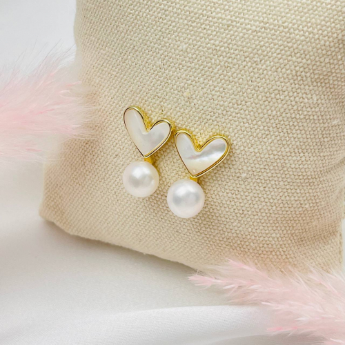 Радуга Самоцветов Серьги-пусеты из речного Жемчуга и Перламутра