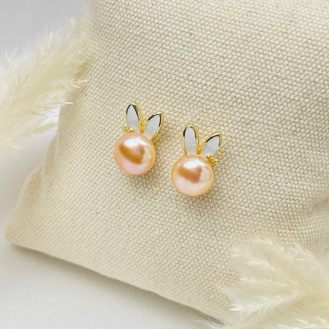Радуга Самоцветов Серьги-пусеты из речного Жемчуга с Эмалью
