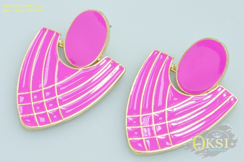 Крупные, но очень лёгкие серьги украшены розовой ювелирной эмалью. Розовый цвет - цвет яркий и неоднозначный, он всегда притягивает к себе внимание. Кроме белого и черного, розовый цвет также сочетается с любым оттенком из пастельной палитры в одежде и аксессуарах. Длина серьги 4 см.