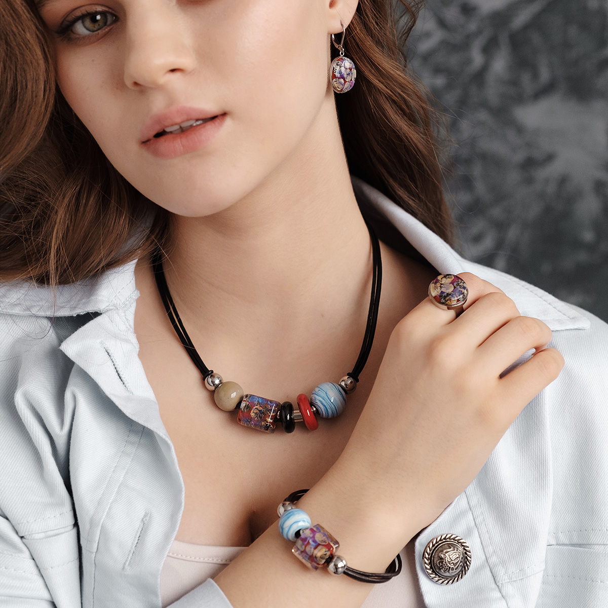 Бренд Vloes - это высококачественная, прочная и износостойкая бижутерия. Входящие в состав материалы позволяют изделиям сохранять первозданный вид в течении многих лет.  Каждое украшение - это поистине эксклюзивная вещь, ведь бусины изготавливаются вручную и всегда имеют свой неповторимый рисунок.