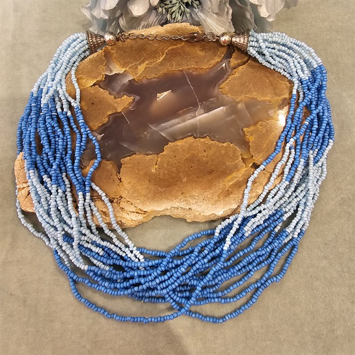 Винтажное ожерелье из бисера многослойное Голубое